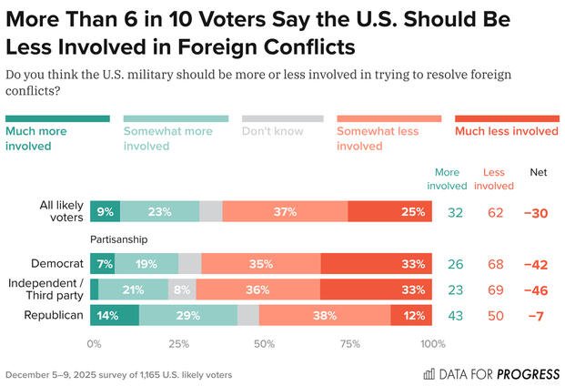 From Dec. 5-9 Data for Progress surveyed 1,165 U.S. likely voters about the ongoings in the Caribbean and whether military involvement overseas should be a bigger priority for the Trump administration than domestic issues.